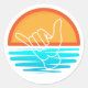 Cet autocollant présente le signe de la main shaka sur un coucher de soleil stylisé de l'océan.