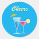 Cet autocollant bleu coloré est agrémenté de boissons tropicales et du mot "Cheers", ce qui le rend parfait pour décorer les faveurs mariages. Si d'autres articles sont nécessaires, contactez-nous à l'adresse prettyfancyinvites@gmail.com avec votre demande.