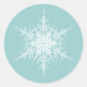 Un flocon de neige illustré sur un délicat arrière - plan turquoise orne cet autocollant. Il peut être facilement customisé à différentes tailles et est parfait pour les scellés d'enveloppe, ou les décorations de fête.