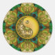 Symbole Yin yang jaune entouré de pétales de fleurs géométriques