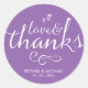 police de caractères décorative vintage et rustique mariage Merci sticker. Design élégant et classique violet et blanc de mariage faveur autocollant. Soirée de mariage classique, étiquette de douche nuptiale, fête d'anniversaire, dîner fiançailles, baby shower et bien plus encore. La couleur de l'arrière - plan peut être changée pour le thème souhaité.