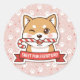A charming Shiba Inu puppy winking with rosy cheeks while holding a candy cane. Simple, cute, and perfect for Christmas crafts, gifts, and planners.