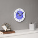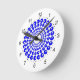 Les perles bleues de taille croissante forment cinq cercles concentriques, de petit au centre à grand dans la jante extérieure. Illusion optique de regarder le long tunnel. Numéros noirs avec marqueurs de minute noirs.