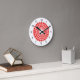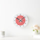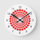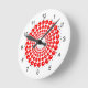 Les perles rouges de taille croissante forment cinq cercles concentriques, de petit au centre à grand dans la jante externe. Illusion optique de regarder le long tunnel. Numéros noirs avec marqueurs de minute noirs.