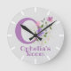 Ronde Horloge dans un design floral avec nom et initiale