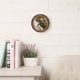 Horloge murale de style occidental rustique, avec une photo d'un rouleau à broche et de pâte. Des graphiques en bois et en fil barbelé entourent les bords extérieurs de l'horloge. Customisez d'ajouter le texte que vous voulez.
