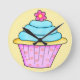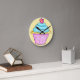 Cette horloge à cupcake présente un cupcake bleu rose et turquoise surmonté d'une fleur rose. L'arrière - plan est jaune. Grand cadeau pour un amoureux du cupcake ! Célébrez un anniversaire ou une autre occasion avec l'art original cake et cupcake qui est parfait pour les garçons et les filles ainsi que pour les adultes. Les couleurs sont à la fois plus douces et plus vives. Entièrement personnalisable pour personnaliser.