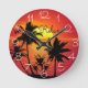 Palmiers de l'île et coucher de soleil orange Photo sur papier avec Relax dit Horloge.