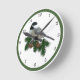 Cette horloge murale de poulet présente ma peinture à l'huile d'art numérique d'un poulet sur des branches de pin avec des cônes de pin. Ça fait une idée de cadeau géniale !