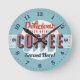 Une horloge murale rétro unique, de style rétro. Un grand ajout à n'importe quelle maison ou bureau. Fait également une idée de cadeau pour tout amateur de café.