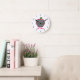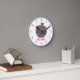 Une horloge pour les enseignants avec une illustration d'une pomme en pied de jambe. Personnalisez avec le nom de votre professeur en rose.