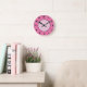 Ronde Points roses et accents noirs Horloge