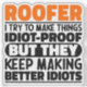 Funny Roofer Sayings "Roofer I Try To Make Things Idiot Proof But They Keep Making Better Idiots". Grab this Funny Roofer design as a funny gifts for an awesome mom, dad or friend.