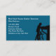 Construction business cards in a theme for roofing and house gutters created with a graphic of a contractor working on a roof and gutter cleaning.