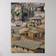 Vertical poster print of the orange clay tile roofs in medieval architecture seen from above from the Torre del Mangia at the Piazza del Campo in the old historic city centre of Siena, a town in Tuscany, Italy. Great decoration!