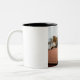 Embark on a feline adventure with our two-tone ceramic mug featuring a daring cat leaping from rooftop to rooftop.