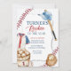Featuring watercolor illustrations of a baseball bat, cap, jersey, and glove, this editable digital invite combines classic Americana charm with a modern touch.