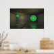 3d digital art of a closed room with 2 glowing green balls filled with water