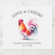 This delightful bridal shower champagne label showcases a vibrant watercolor rooster in shades of pink and orange, perfect for adding a unique touch to your celebration. Use the template fields to personalize the label with your custom text, creating a memorable gift for guests. Ideal for rustic barn weddings and country-inspired bridal showers, this charming label is a standout choice for 2025 wedding themes. Perfect for bulk bridal shower gifts for guests, it brings a blend of rustic charm and elegance to any gathering. Explore more wedding wine label ideas and matching designs to complete your look!