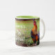 Rooster Crowing Where's My Coffee Funny Two-Tone Coffee Mug