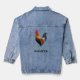 Rooster Design on the back of this Denim Jacket with customizable text to change or delete. Select your appropriate size from the drop-down menu.