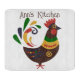 "Rooster" Folk Art Style Custom Glass Cutting Board. Introducing our beautiful kitchen cutting board, featuring a charming rooster on a white background. Inspired by a folk art colour palette and style, this piece adds a touch of charm and elegance to any kitchen decor. What sets this product apart is its customization option, allowing you to personalize it with your name or the name of a loved one, making it a thoughtful gift. To complete your kitchen ensemble, we offer coordinating products such as a kitchen towel, oven mitt and pot holder set, as well as a wall clock and coffee/tea mug. The best part? The wall art, coffee/tea mug, cutting board, and oven mitt can all be customized to your liking.