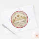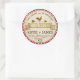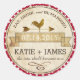 Rooster weather vane with red gingham check background rustic country picnic wedding label design.