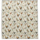 A off-white, light beige background decorated with a retro farmhouse style rooster and hen pattern.