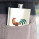 A colourful rooster graphic with lots of room to add text to personalize your flask.