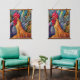 Rooster Splendour - Unparalleled Majesty. This rooster art is a thing of beauty - it is a swirling, colourful burst of textures and surrealism. From the subtle layering of hues to the intricate patterns, this artwork is an eye-catching piece that is sure to take your breath away.