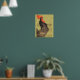 Art Nouveau Theophile Steinlen Rooster - Cocorico cover 1899 - This wonderful art nouveau French Rooster poster is titled, Cocorico, or Cockerel Rooster. This beautiful black rooster has a bright red comb on top of its head and red wattles under its chin. The Cockerel Rooster is crowing loudly and happily. Around the edges is the Art Nouveau lettering for this French poster, a large Cocorico is drawn, underneath of which include several names and "Paris."