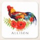 Rooster with Flowers Personalized Square Paper Coa Coaster