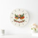 Colourful rooster with hen, green leaves and red viburnum berries, Petrykivka painting traditional Ukrainian decorative painting style