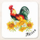 Rooster with Sunflowers Personalized Square Paper Coaster