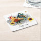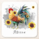 Rooster with Sunflowers Personalized Square Paper Coaster