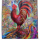 This rooster stands tall and proud in a field of colours, its feathers a kaleidoscope of colours. In the foreground, a surreal landscape of cubes and spirals emerges, creating a strange and captivating setting.