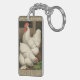 Roosters & Hen outside Hen House with White Border Keychain