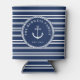 Rope & Anchor Navy Blue Stripes Add Name Can Cooler