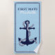 Choose any background colour to suit this nautical theme beach towel. The large anchor with entwined rope and the rope border are all done in navy blue and white. We've added the optional text 'First Mate' and a name that can both be changed to suit your needs using the provided template. Search ID402 to see other colour options and additional products with this design.