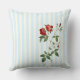Rosa indica ivory & blue strip throw pillow