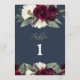 ROSA Rich Burgundy Floral Navy Blue Table Number