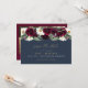 This wedding save the date features rich burgundy watercolor florals, a deep navy blue background, and elegant golden script font. Easily add your photo onto the backside along with your wedding website for a personal touch. This save the date is the perfect addition to your classic or winter floral themed event.