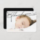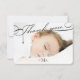 This classy religious flat thank you card features an elegant and classic calligraphy 'Thank You' script with a simple beaded rosary cross accent. The baby's initials or monogram overlays a full bleed single photo on the front of the card. Background colour on the back of the card can be changed.