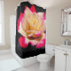 This shower curtain has a beautiful rose pictured on it.