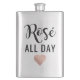 Stylish "Rosé All Day" drinking flask in modern black script with rose gold heart.