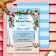 Dîner de répétition romantique avec l'image d'un bar rose avec voiles, donnant sur une plage. Cette invitation est agréable pour un couple qui planifie un mariage plage, croisière ou destination.