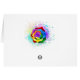 Grand rose fleuri avec pétales arc-en-ciel sur arrière - plan blanc, peint sur des éclaboussures de peinture colorée et lumineuse. 3d