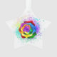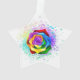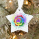 Grand rose fleuri avec pétales arc-en-ciel sur arrière - plan blanc, peint sur des éclaboussures de peinture colorée et lumineuse. 3d