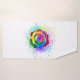 Grand rose fleuri avec pétales arc-en-ciel sur arrière - plan blanc, peint sur des éclaboussures de peinture colorée et lumineuse. 3d