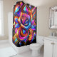 This shower curtain has a rose design on it.